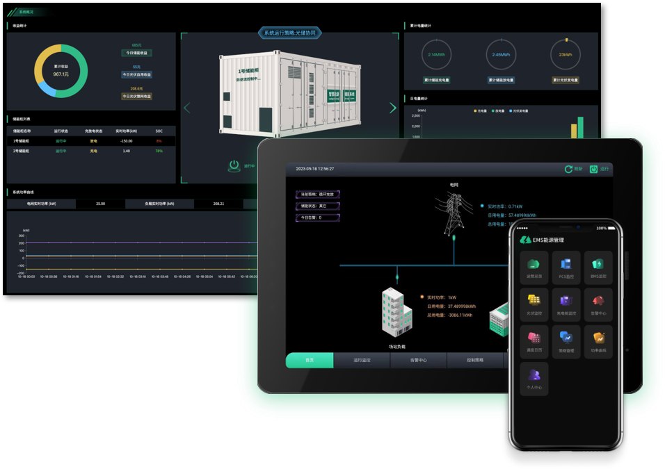 就地端采用10英寸電容屏,操作流暢。場(chǎng)站系統(tǒng)和云平臺(tái)采用BS架構(gòu),功能強(qiáng)大。APP提供友好的移動(dòng)端交互體驗(yàn),幫助場(chǎng)站管理者隨時(shí)隨地了解儲(chǔ)能系統(tǒng)的運(yùn)行狀況和收益情況。