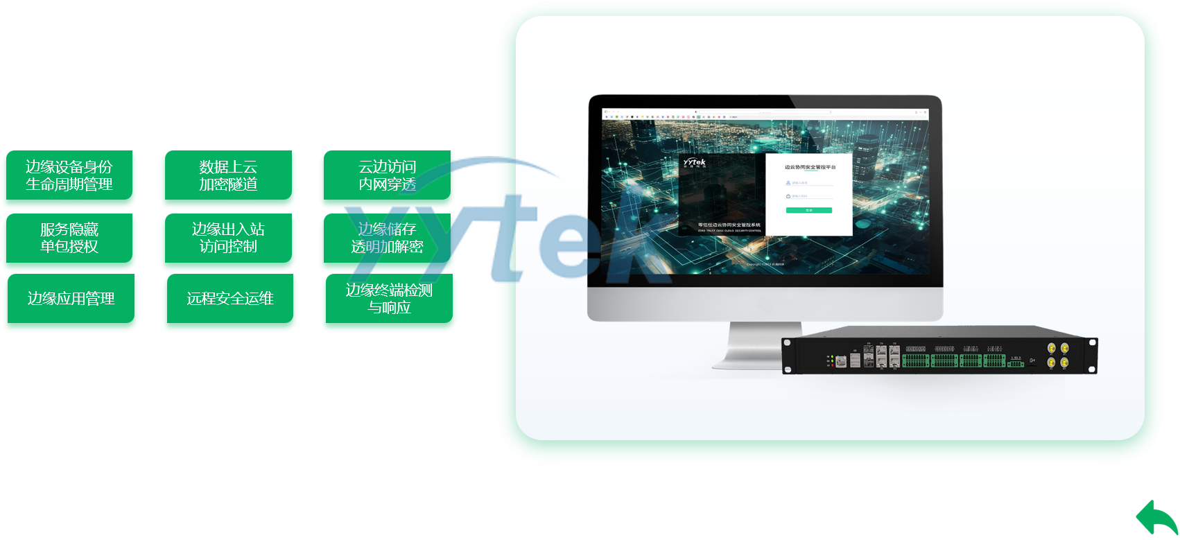 系統(tǒng)基于零信任理念,采用SDP軟件定義邊界網(wǎng)絡(luò)安全架構(gòu),為基于云、邊、端三級(jí)分層模型的物聯(lián)網(wǎng)系統(tǒng),提供增強(qiáng)身份認(rèn)證和授權(quán)、設(shè)備接入安全、網(wǎng)絡(luò)訪問(wèn)與傳輸安全、數(shù)據(jù)存儲(chǔ)安全、安全應(yīng)用倉(cāng)庫(kù)、安全運(yùn)維等多維度防護(hù)。