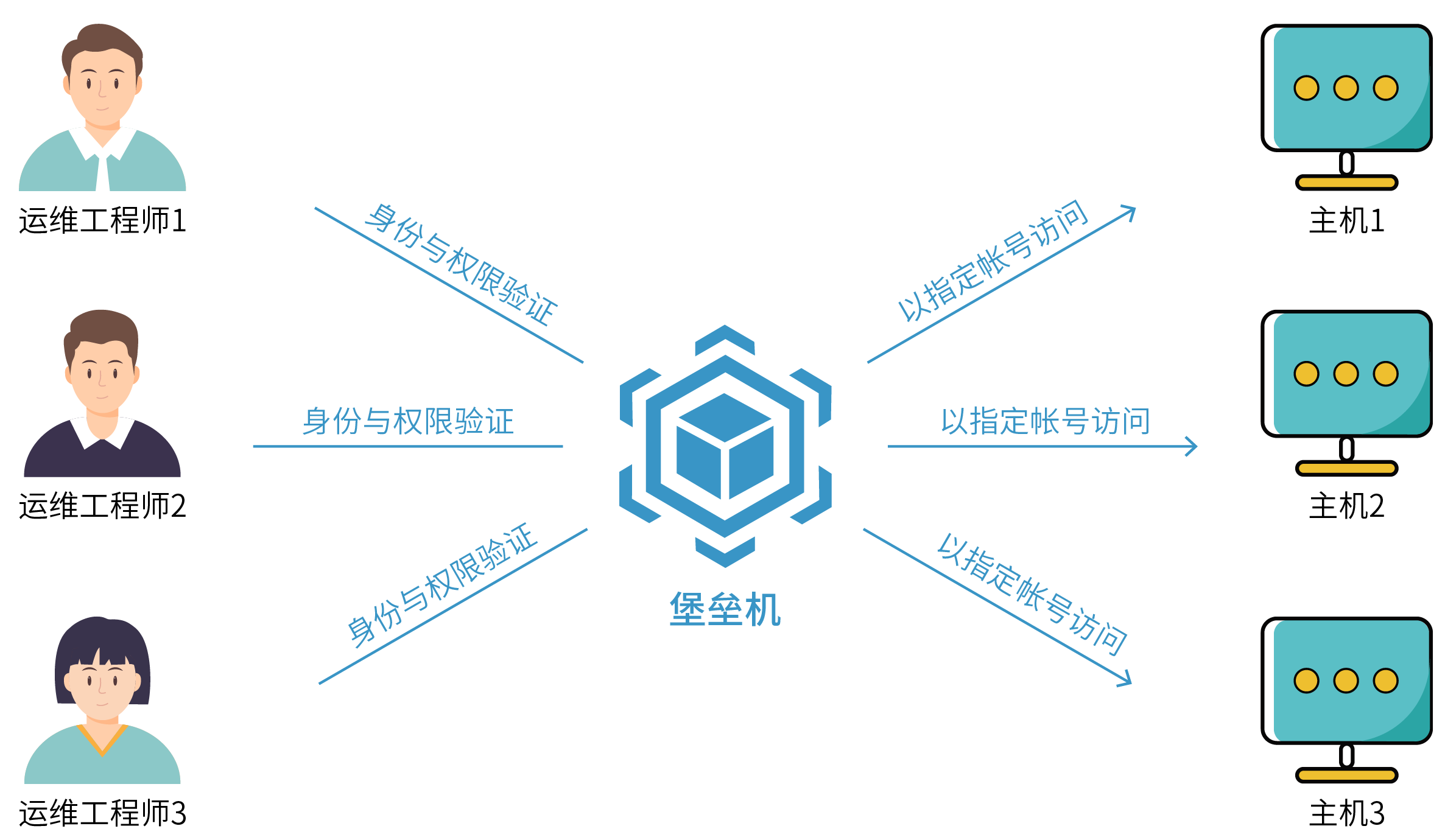 一方面堡壘機(jī)可通過(guò)遠(yuǎn)程運(yùn)維,隱藏資產(chǎn)的真實(shí)地址,解決資產(chǎn)信息暴露問(wèn)題,另一方面通過(guò)提供多賬號(hào)統(tǒng)一運(yùn)維收口和權(quán)限細(xì)粒度劃分管理,實(shí)現(xiàn)便捷運(yùn)維和靈活規(guī)范化管理,最后通過(guò)提供全面的運(yùn)維日志,對(duì)整個(gè)運(yùn)維過(guò)程,包括人員操作行為提供有效監(jiān)控,得以保證互聯(lián)網(wǎng)企業(yè)在不斷發(fā)展過(guò)程中的持續(xù)穩(wěn)定。