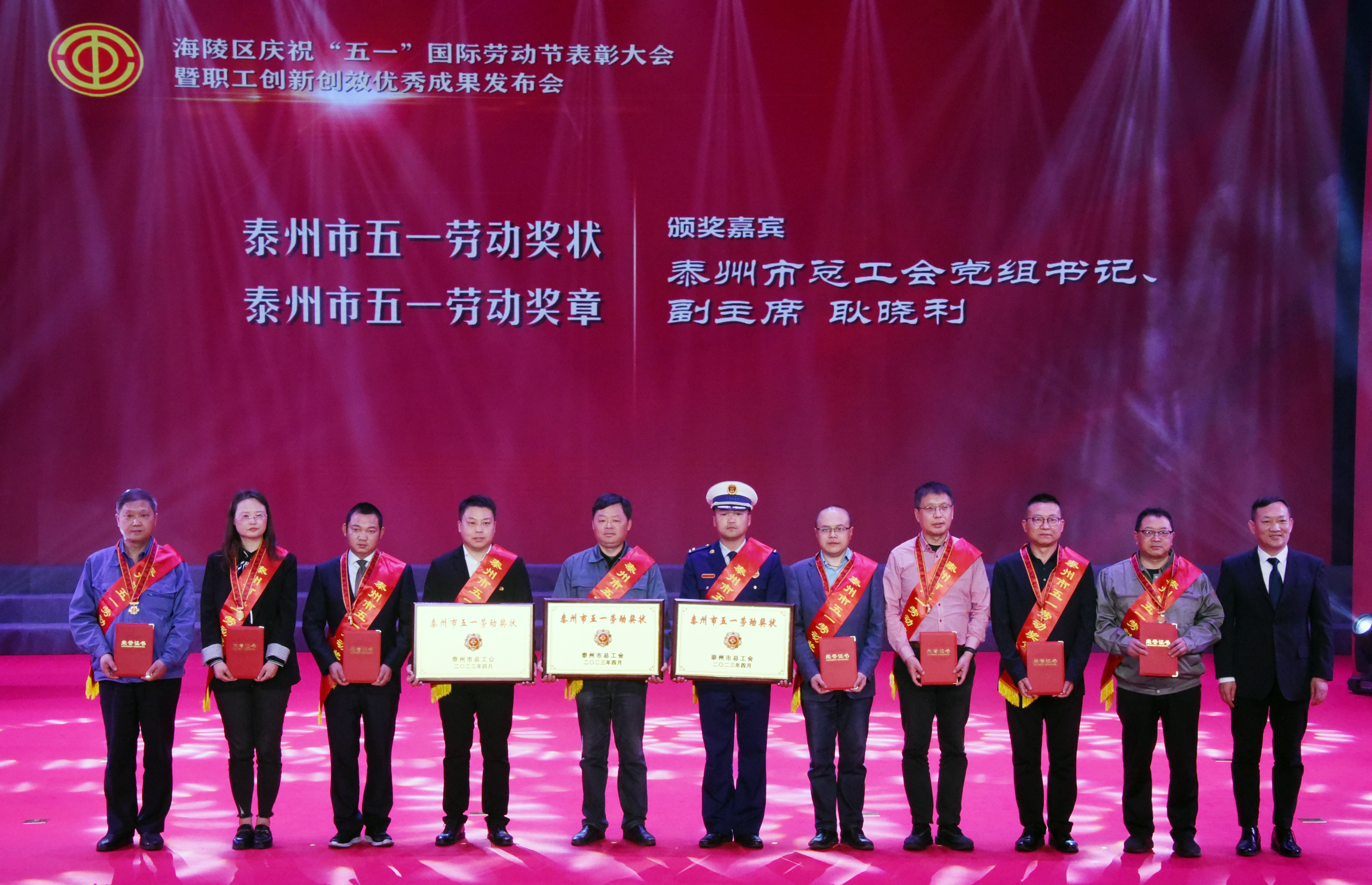 ? ? ? 4月27日下午,為隆重慶?!拔逡弧眹?guó)際勞動(dòng)節(jié),表彰先進(jìn)典型,大力弘揚(yáng)勞模精神、勞動(dòng)精神和工匠精神,全面落實(shí)“四敢”重大要求,充分激發(fā)全社會(huì)創(chuàng)新創(chuàng)造活力,動(dòng)員號(hào)召全區(qū)廣大職工積極投身中國(guó)式現(xiàn)代化海陵新實(shí)踐,泰州市海陵區(qū)舉辦了慶?!拔逡弧眹?guó)際勞動(dòng)節(jié)表彰大會(huì)暨職工創(chuàng)新創(chuàng)效優(yōu)秀成果發(fā)布會(huì)。