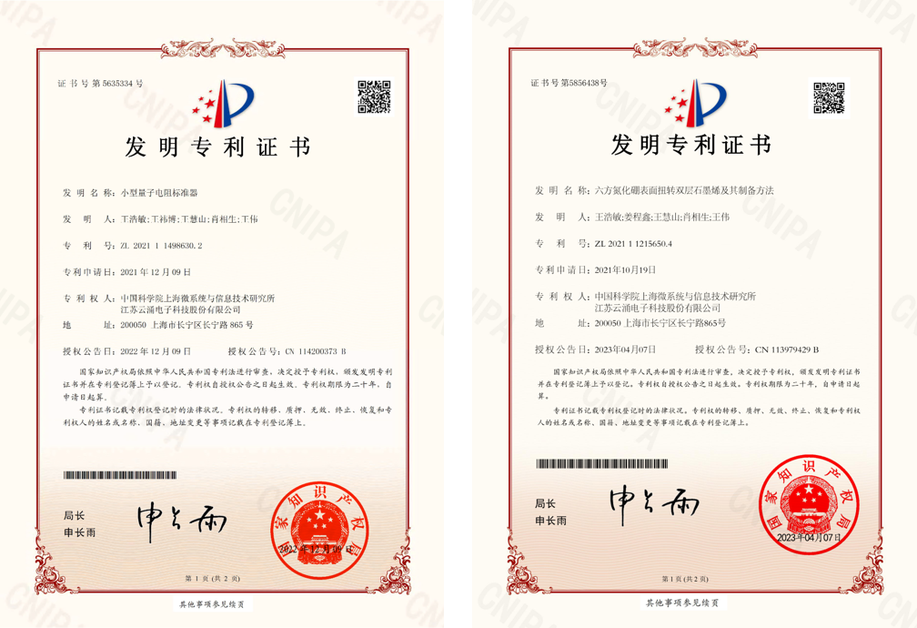 公司自2019年開始,與中國科學院上海微系統(tǒng)與信息技術(shù)研究所建立了產(chǎn)學研合作關(guān)系,推動最新科技成果轉(zhuǎn)化,賦能創(chuàng)新產(chǎn)業(yè)發(fā)展。其中開展了關(guān)于量子電阻標準模塊研發(fā)和量子電阻標準原型機研發(fā)的項目,其中標準模塊的研發(fā)已經(jīng)完成,原型機的研發(fā)還在有序進行中。截止到目前,雙方共同申請了4項發(fā)明專利,其中已有2項獲得授權(quán)證書。