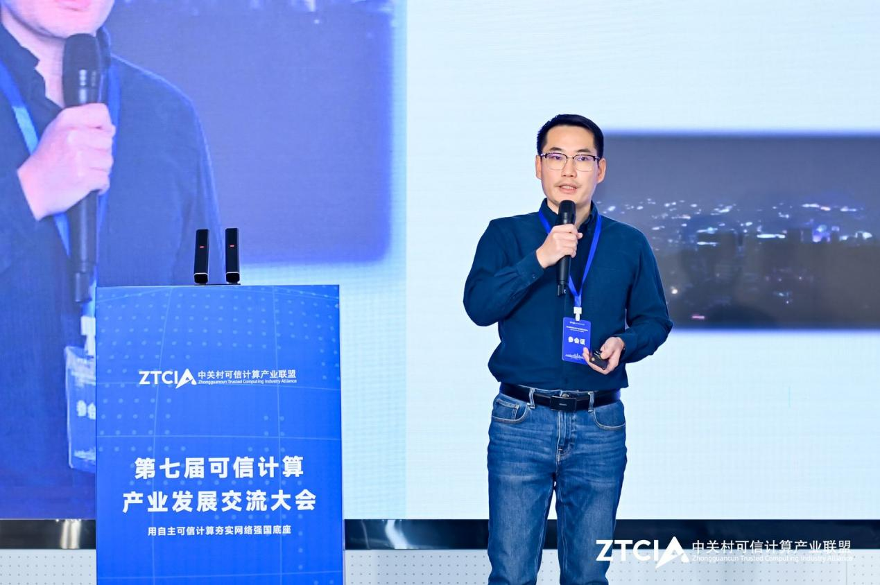 在下午的技術(shù)成果演講環(huán)節(jié),云涌高級研發(fā)技術(shù)工程師羅輝先生,以《立足可信計算技術(shù)架構(gòu) 筑牢關(guān)鍵基礎(chǔ)設(shè)施的安全底座》為題,向參會的各位嘉賓做了精彩的演講,展示了云涌在可信計算產(chǎn)業(yè)落地方向的所做的積極探索。