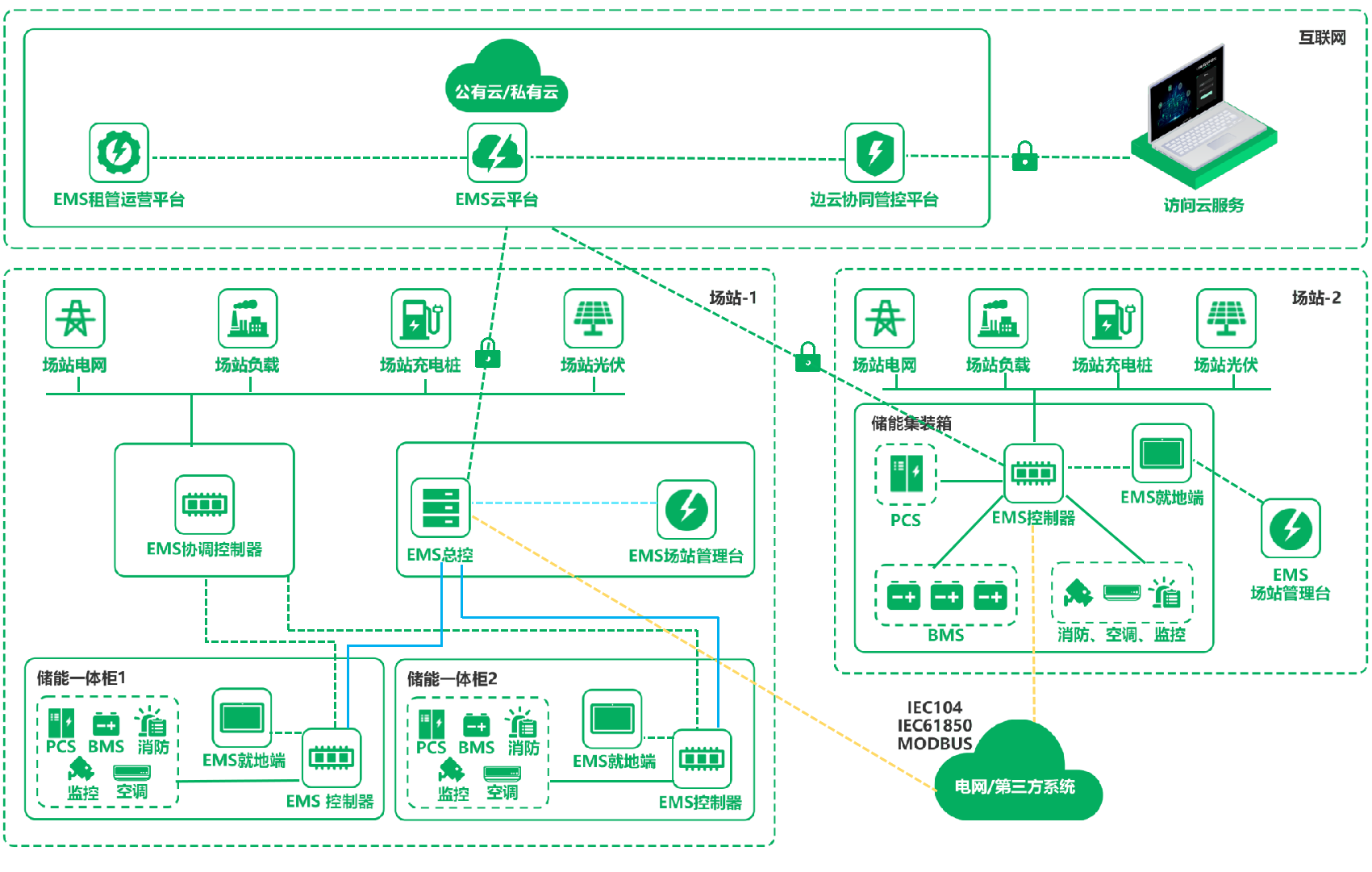 在智慧能源領(lǐng)域,云涌科技致力于EMS定制開發(fā)多年,產(chǎn)品以標(biāo)準(zhǔn)的基于邊緣計(jì)算的物聯(lián)網(wǎng)平臺(tái)為底座,采用微服務(wù)軟件架構(gòu),利用四遙技術(shù)對(duì)儲(chǔ)能設(shè)備進(jìn)行實(shí)時(shí)的數(shù)據(jù)采集與控制,并通過大數(shù)據(jù)技術(shù)對(duì)場(chǎng)站的能耗數(shù)據(jù)進(jìn)行分析及預(yù)測(cè),幫助企業(yè)實(shí)時(shí)了解整個(gè)場(chǎng)站電力系統(tǒng)的運(yùn)行狀況,從而結(jié)合系統(tǒng)策略,實(shí)現(xiàn)對(duì)儲(chǔ)能系統(tǒng)各個(gè)設(shè)備的全生命周期管理。