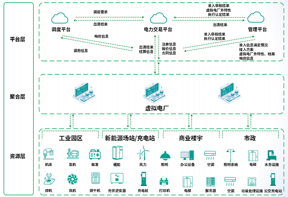 公司是泰州“首家”完成虛擬電廠注冊的企業(yè),虛擬電廠作為一種智慧能源管理系統(tǒng),被稱為能源產(chǎn)業(yè)鏈的“最后一公里“,其核心是將分布式的發(fā)電設(shè)備、儲能系統(tǒng)、電動汽車、可調(diào)節(jié)負荷等資源聚合起來,通過智能算法和通信技術(shù)統(tǒng)一調(diào)度,使其能夠像傳統(tǒng)發(fā)電廠一樣參與電力市場交易或響應(yīng)電網(wǎng)需求,從宏觀層面上,實現(xiàn)能源的高效利用和電網(wǎng)穩(wěn)定運行。