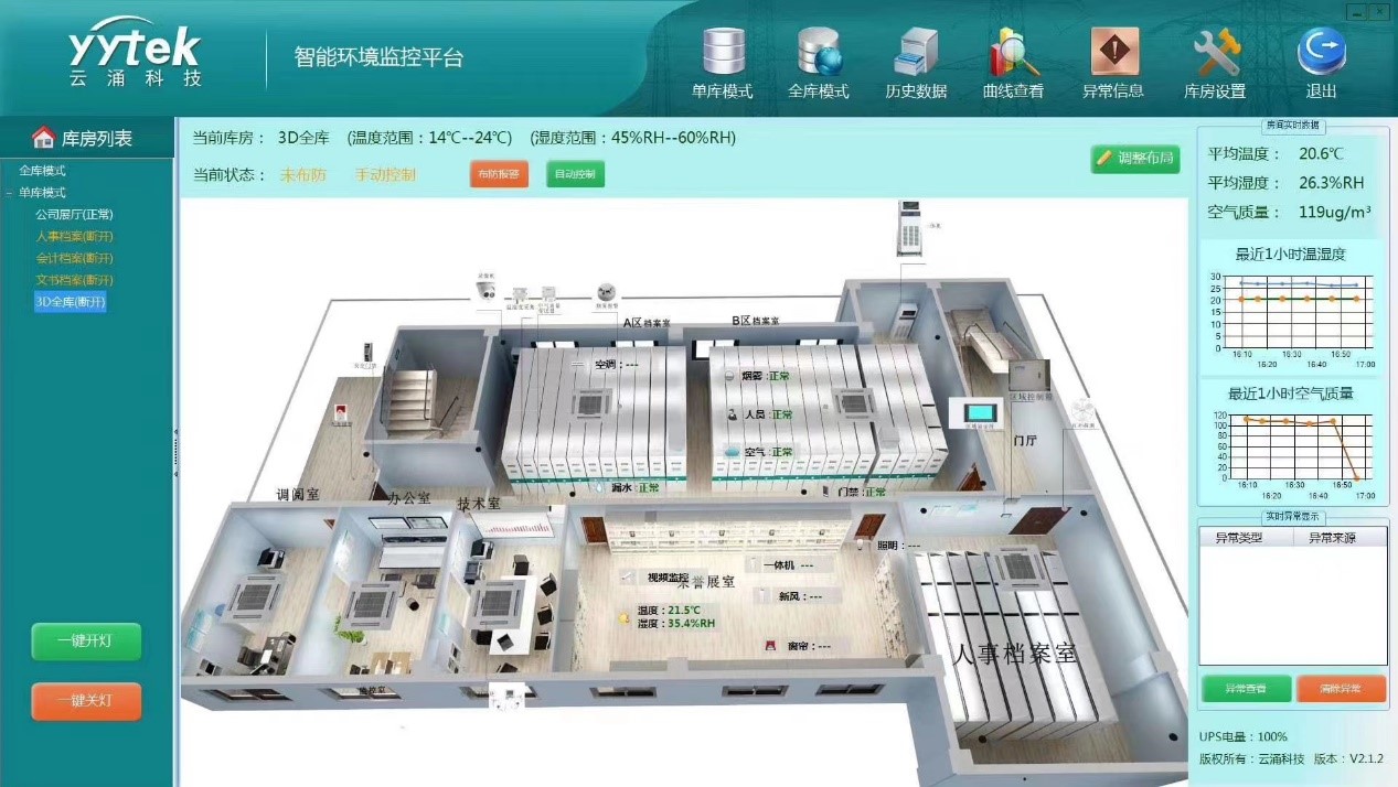 云涌檔案一體化管控平臺(tái),集成了物聯(lián)網(wǎng)云平臺(tái)、低功耗的物聯(lián)網(wǎng)通信技術(shù),環(huán)境監(jiān)控系統(tǒng),底層傳感器采集,電機(jī)控制,結(jié)構(gòu)設(shè)計(jì)等技術(shù),利用云平臺(tái)的處理能力和存儲(chǔ)技術(shù),構(gòu)成一個(gè)一體化、網(wǎng)絡(luò)化的集中監(jiān)控系統(tǒng),提高日常維護(hù)效率,降低勞動(dòng)強(qiáng)度和人工成本。